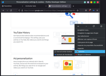 นอกจากฟังก์ชันหลักแล้ว Unchecker ยังมีฟีเจอร์ที่ไม่เหมือนใครที่ช่วยให้ผู้ใช้สามารถโต้ตอบกับปุ่มที่มีวัตถุประสงค์คล้ายกับกล่องตรวจสอบ โดยการใช้ตัวเลือก 'คลิกปุ่มที่คล้ายกันทั้งหมด' จากเมนูบริบท ผู้ใช้สามารถปิดการใช้งานปุ่มหลายปุ่มที่มีป้ายกำกับว่า 'ปิด' หรือ 'ปิดการใช้งาน' ด้วยการคลิกเพียงครั้งเดียว ฟังก์ชันการทำงานสองอย่างนี้ทำให้ Unchecker เป็นทรัพย์สินที่มีค่า สำหรับผู้ที่ต้องการปรับปรุงการจัดการความเป็นส่วนตัวออนไลน์ของตน
